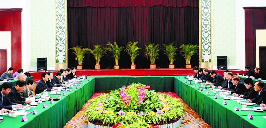 4月12日上午,我省对口援疆考察团与新疆维吾尔自治区领导共商对口支援大计。 本报记者 黄曙林 摄