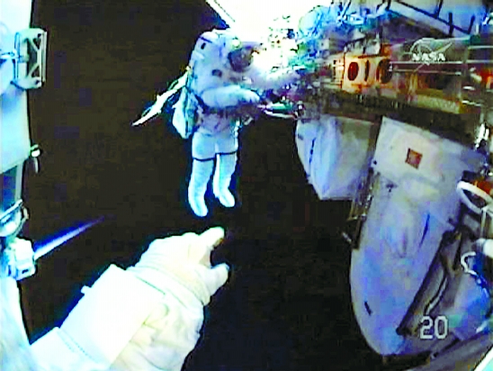 美国宇航局4月13日发布的照片显示,“发现”号航天飞机宇航员里克·马斯特拉基奥在国际空间站外实施太空作业。“发现”号宇航员里克·马斯特拉基奥和克莱顿·安德森两人在国际空间站外实施了太空行走。