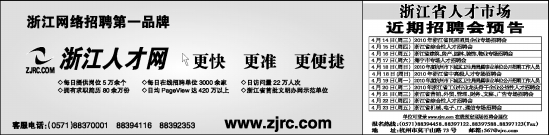 4月18日 (周日) 2010年浙江省中高级人才专场招聘会