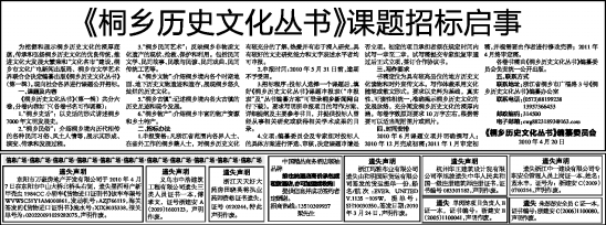 《桐乡历史文化丛书》课题招标启事
