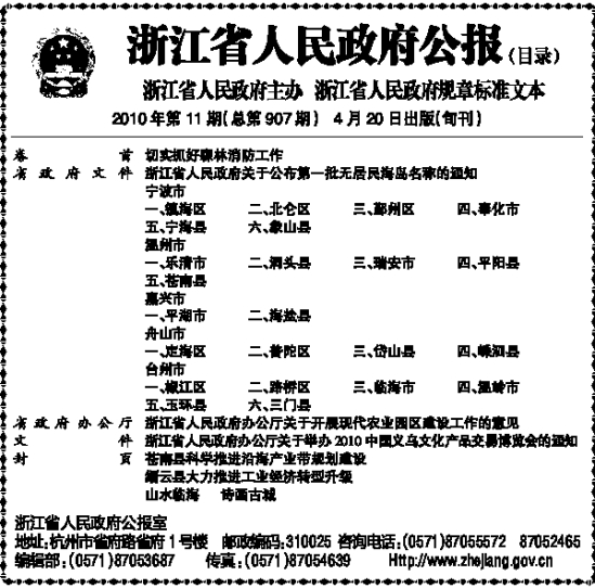 编辑部:(0571)87053687 传真:(0571)87054639 Http://www.zhejiang.gov.cn