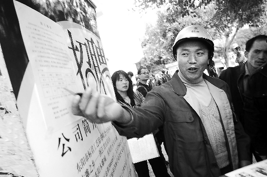 东阳市标君工艺品有限公司日前在广西广南县城长途车站树起招工牌招收工人。 本报记者 徐彦 摄