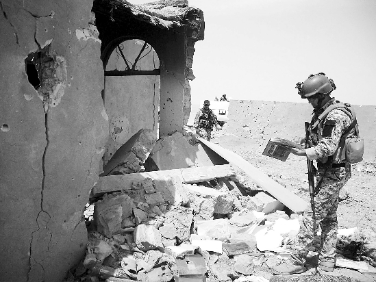 伊拉克警察查看击毙“基地”组织伊拉克分支头目的现场。 新华社发