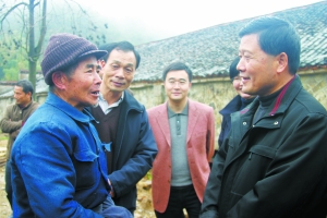 在服务新农村建设专项行动中,省国土资源厅调研组在缙云县前路乡西散村,向村民了解土地综合整治、旧村改造情况。李风 摄