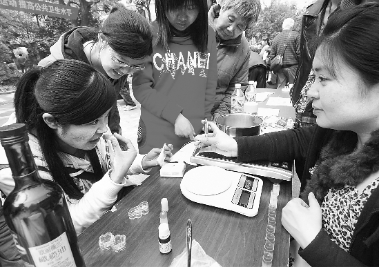 日前,杭州小营巷社区的居民正在试用现场制作的低碳又环保的润唇膏,受到居民欢迎。 叶寒青 金帆 张文婷 摄