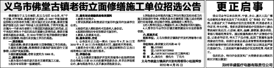 义乌市佛堂古镇老街立面修缮施工单位招选公告