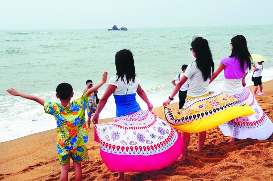 | 海南有关部门将对今年“五一”期间部分宾馆酒店实施临时价格干预。今年春节期间当地部分宾馆酒店出现乱涨价现象。图为4月25日,来自重庆的几名游客在琼海博鳌海滨拍照留念。 新华社发 |