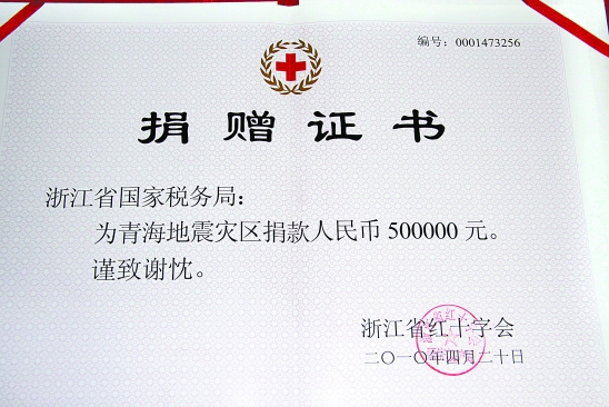 青海玉树地震牵动着全省国税干部的心。4月20日,省国税局通过省红十字会,紧急向青海地震灾区捐款人民币50万元。 胡政 摄