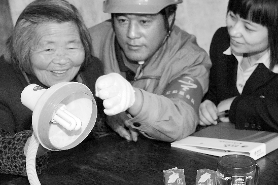 4月26日,海宁市供电局“红船服务队”来到长安镇盐仓村困难户杜情娥家,为她进行家用电器维护。 记者 叶寒青 通讯员 张娟霞 摄