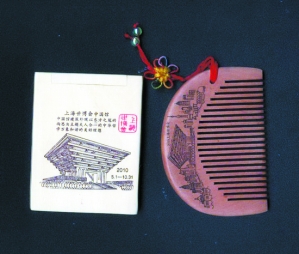 近日,位于莲都区仙渡乡的丽水市零雕工艺品公司成功入选世博会民企馆“活力矩阵展示墙”。其生产的化妆镜、保健梳、精美相框、山水挂画等20多种竹制工艺品获得世博会组委会授权,成为世博会特许生产纪念品。这是莲都区唯一可以生产世博会竹制产品的厂家。图为世博会竹制纪念品梳子、化妆镜组合。