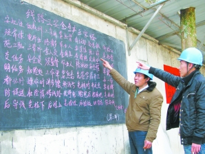 在开展“三个不发生”百日安全活动中,云和电力局紧水滩供电所线路职工通过实际工作经验,结合安全生产工作规程,编写出了一套较为实用的线路工安全生产新“三字经”,成为线路职工今后在线路作业中的护身符。