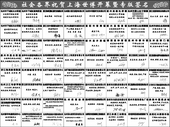 社会各界祝贺上海世博开幕暨专版签名
