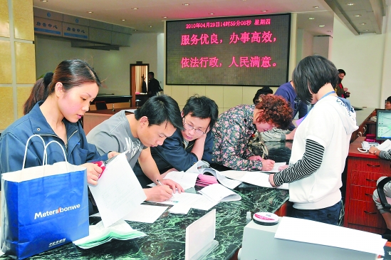 余姚泗门镇行政审批中心里,工作人员正在受理审批事项。陈醉 摄