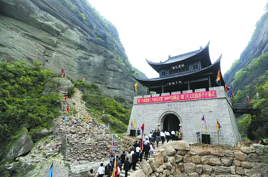 | 汶川大地震中遭重创 4月29日,游客通过重建后的剑门关关口。在汶川大地震中遭受重创的剑门关景区在经过一年多时间的封闭式重建后,于当日重新开关迎客。位于四川省广元市剑阁县的剑门关有“天下雄关”之称,是国务院公布的第一批国家级风景名胜区。新华社发 |