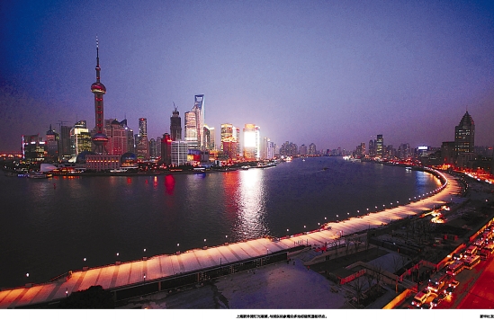 上海新外滩灯光璀璨,与浦东陆家嘴众多地标建筑遥相呼应。 新华社发