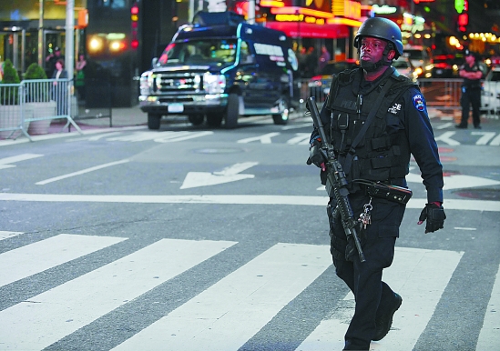 图为5月1日,警察在美国纽约时报广场附近警戒。 新华社发