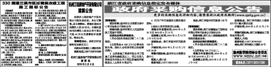 更多的采购信息及详细内容,请登录浙江政府采购网(www.zjzfcg.gov.cn)