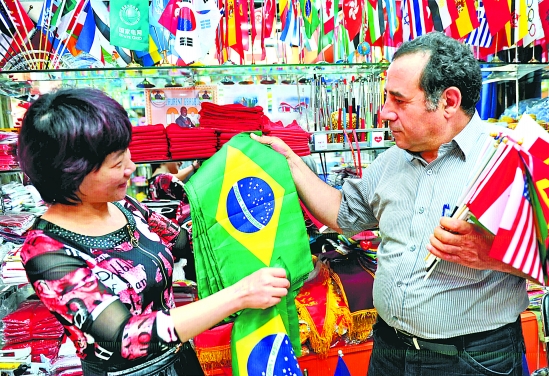 2010南非足球世界杯开幕临近,义乌小商品市场国旗、假发、手环、头巾、荧光棒等球迷用品畅销。
