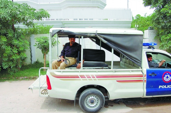 5月5日,一辆警车停在巴基斯坦白沙瓦巴裔美国公民费萨尔·沙赫扎德的住所门前。 新华社发