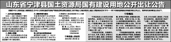 山东省宁津县国土资源局国有建设用地公开出让公告