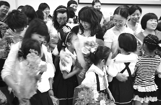 5月6日,丽水市莲都区城北小学的学生和母亲一起,开展以母亲节感恩为主题的班队活动。 朱丽勇 摄