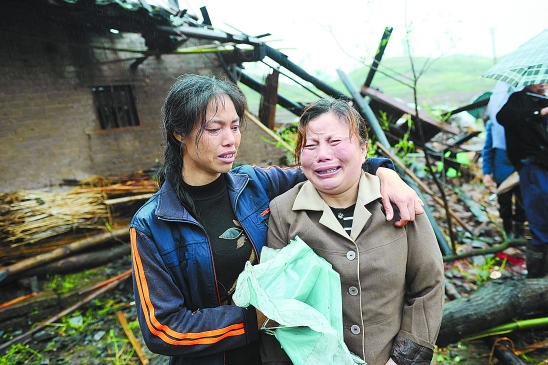 5月6日,在重庆垫江县沙坪镇李白村,失去亲人的村民在废墟前痛哭。 新华社发