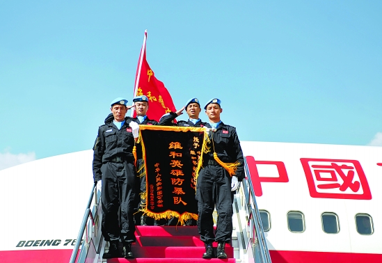 5月6日,中国第八支赴海地维和警察防暴队队员乘飞机抵达昆明。第八支赴海地维和警察防暴队是由云南边防总队为主组建的,共有126名队员。 新华社发