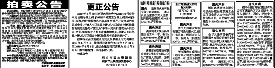 受法院委托,本公司将于2010年5月26日9时30分在宁波中山东路93号宁波精华拍卖有限公司拍卖厅举行拍卖会: