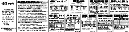更多信息查询:浙江体育彩票网 www.zjlottery.com
