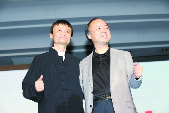 马云和孙正义出席发布会。 记者 梁臻 摄