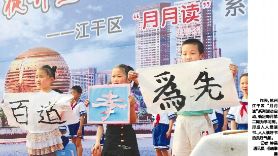 昨天,杭州江干区“月月读”系列活动启动,确定每月第二周为学习周,形成人人爱读书、人人读好书的良好气氛。
