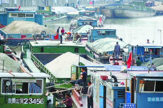 5月11日下午4时半,在杭州三堡船闸内等候通行的船只排起了长队。 本版图片均由本报记者 钟昊 摄