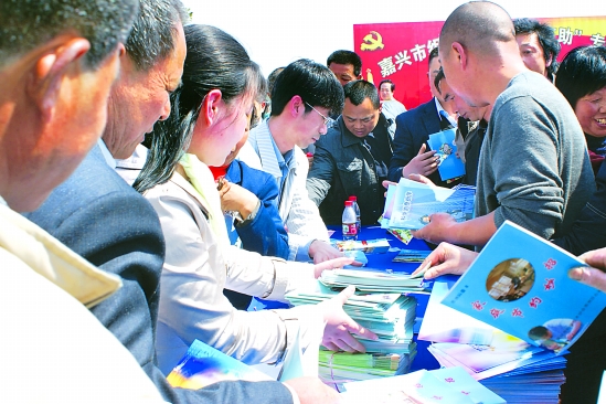 嘉兴市组工干部向基层群众免费赠送实用书籍。