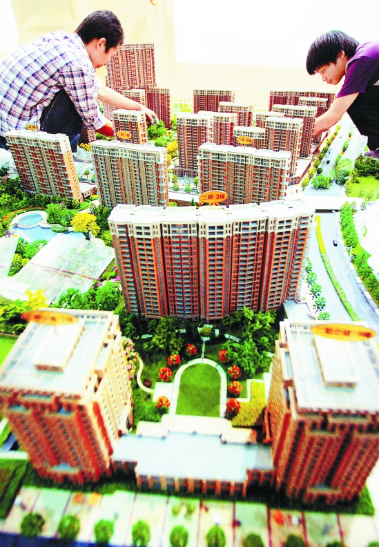 | 5月12日,杭州市和平国际会展中心,几位装修工人正在搭建楼盘模型。13日,中国(杭州)第十届最佳人居环境展览会将在这里开幕。房交会向来有“楼市风向标”之说,新政后的首个杭州房交会是否会出现大规模的降价潮,购房者会否出手,本次房交会让人充满疑问和期待。 本报记者 吴煌 摄 |