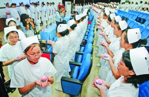 | 5月12日国际护士节,杭州师范大学钱江学院举行护士节授帽传灯仪式,同时护理学院请来南丁格尔奖章获得者张水华、毛泽东护士长俞雅菊等多位著名校友,谆谆寄语风华正茂的学弟学妹。 本报记者 钟昊 陈扬渲 通讯员 邢五洲 摄 |