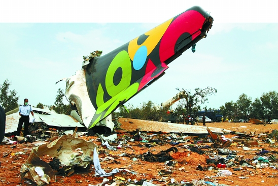 图为5月12日,营救人员在利比亚首都的黎波里机场对坠机现场进行检查。 新华社发