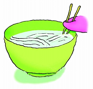 小时候家里穷,很少能吃上肉,但母亲做的饭会让家里人都满意。她做饭前先洗上一把小葱,把小葱剁成细细碎碎的葱花,用盐、麻油腌着,然后开始和面、擀面条。