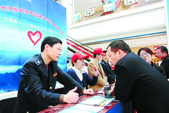 | 近日,一支由国地税、会计师事务所、税务师事务所、企业会计出纳共244人组成的志愿者纳税服务队在桐乡成立。当日,志愿者服务队分组到桐乡市红星美凯龙、庆丰社区和5户特殊企业开展纳税服务。 杨伟东 管利权 摄 |