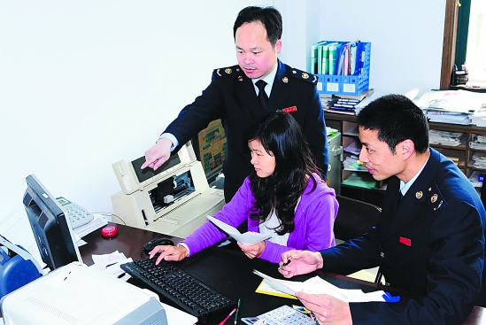 近日,萧山区国税局临浦分局针对成长型中小企业推出上门送政策、送服务活动。图为该局税务干部为企业财务人员讲解最新的税收优惠政策,并对操作流程进行现场指导。 姚楠 徐圭强 摄