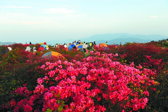 人间四月芳菲尽,高山杜鹃始盛开。在海拔1400多米的遂昌县高坪乡茶树坪村桃源尖,万亩野生杜鹃迎风绽放。绵延10余公里的无边花海,让你不得不惊叹大自然的神奇造化。从5月初直到下旬,很多驴友都会带上帐篷,在山巅的花海露营,来一次心灵的朝圣。