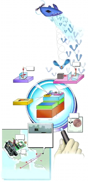 用名为“智能尘埃”的小型电子设备搜集飘在空中的信息。每个“尘埃颗粒”上都有一个传感器、电脑以及无线接收器。用轻薄芯片造出的“尘埃”一次可在空中停留数小时。