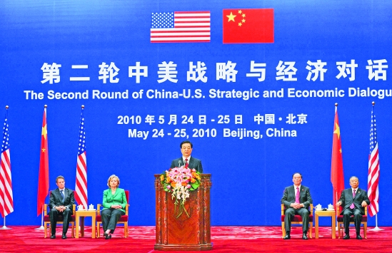 5月24日,国家主席胡锦涛在北京人民大会堂出席第二轮中美战略与经济对话开幕式并发表重要讲话。 新华社发
