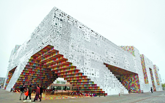 | 主题:和谐城市,多彩生活 造型亮点:外立面以立体化的韩文和五彩像素画装饰,以“沟通与融合”为元素,展现韩国风情 场馆简介:展馆一层是按比例缩小的韩国首尔,通过影像展现“我的城市”;二层展示“我的生活”,用高科技手段演绎文化、科技、人性和自然;“我的梦想”展区展示未来技术,并预展2012年丽水世博会的美妙画卷。在“我的生活”展区,可体验真实韩国:五光十色的舞台、鸟语花香的房子、充满未来创意的城市…… 本报记者 季叶海 钟昊 摄 |