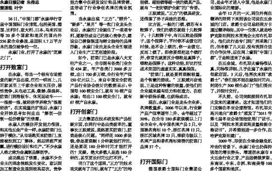 “防盗门,就是要同盗贼较量,是个智慧的游戏。”王跃斌兴奋地说,正是这种智慧的较量,使他们的企业越来越有活力和创造力,在创新中获得乐趣,也获得成功。