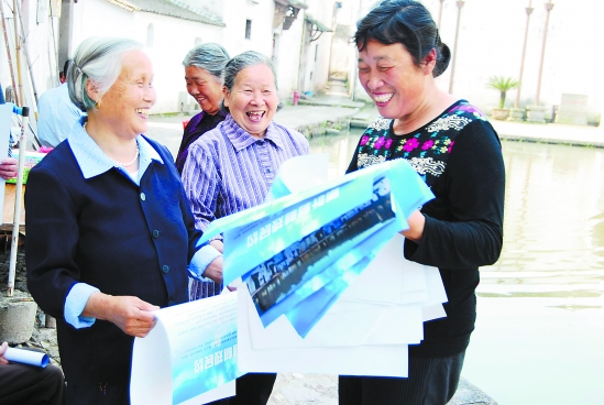 5月25日,建德市大慈岩镇新叶村的每家农户都收到村里统一赠送的“升级版”村规民约。新村规民约增加了保护古村落和保存农耕文化的措施。图为村干部在给村民发送《新叶村村规民约》。