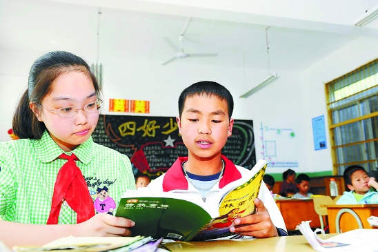 杭州天长小学的学生和丽水峰源小学的学生同看一本书。