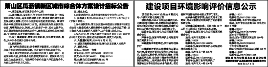 萧山区瓜沥镇新区城市综合体方案设计招标公告