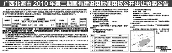 广西北海市2010年第二期国有建设用地使用权公开出让拍卖公告