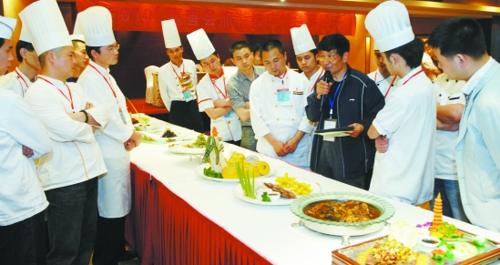 | 让世博游客 品尝特色菜 近日,嘉善举办“服务世博旅游饭店特色菜肴展评”活动,来自全县10家三星级以上的旅游饭店当场烹饪出各自的菜肴参加展评。为服务好世博游客,让世博游客品尝地道的特色菜,作为长三角世博体验之旅示范点的嘉善县,全方位推出了各项服务。 县报道组 王建超 摄 |