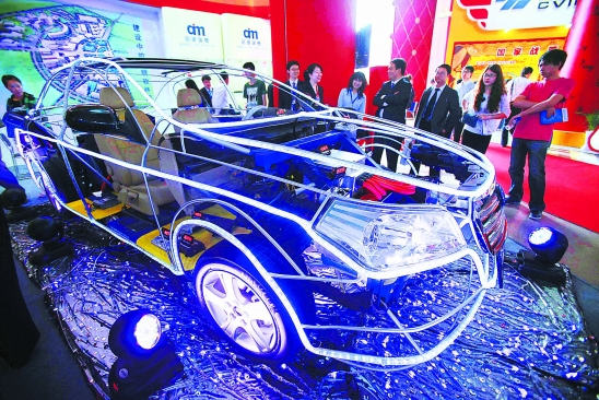 6月2日,在北京开幕的第十四届中国国际软件博览会上,观众在欣赏新能源数字化汽车模型。来自国内外的数百家软件厂商展出了前沿软件创新技术和产品。